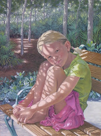 Set out to do an experiment at the last portrait studio session. Thought I had put a thick enough underpainting of acrylic medium to be able to wipe off paint down to white. Only used burnt sienna and a brush or rag with turps to erase with. Unfortunately, the thin paint didn't rub off as I had hoped. But when I brought the monochrome painting home and looked at it for a few days, I couldn't resist finishing it. The original value study gave the final painting dramatic contrasts with the back lit lighting. Not only was the model back lit, but the strong studio lights glared directly into my eyes. Now I know why artists often wear baseball caps, inside or out... brims cut glare.